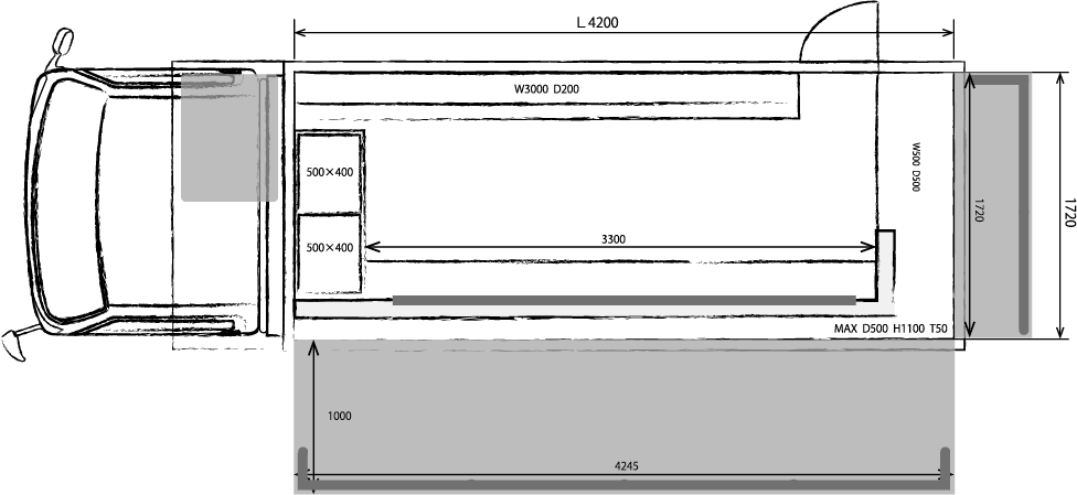 営業時:幅3,200 長7,360 高3,000cm